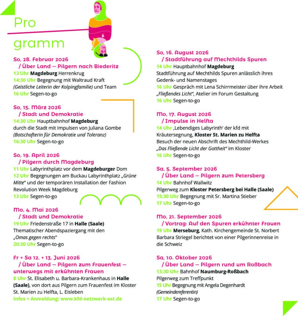 bis Oktober 2026 gibt es monatliche Empowerment-Veranstaltungen (s.u. Flyer zum Download, tageweise Anmeldung über den Bistumskalender) mit thematischen Stadtführungen, Vorträgen und Pilgern u.a. zum