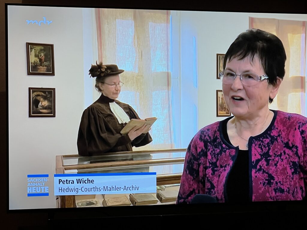 Der mdr hat von der Neu-Eröffnung am 7. März 2026 und vom Suchaufruf Petra Wiches berichtet. Im Hintergrund steht Gudrun Parzcyk im Gewand, wie sie bei Führungen „unsere Hedwig“ verkörpert. Es werden noch Schenkungen für die Ausstellung entgegengenommen!